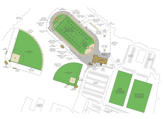 BALL FIELDS, BLEACHERS, FIELD EVENTS, PRESS BOX